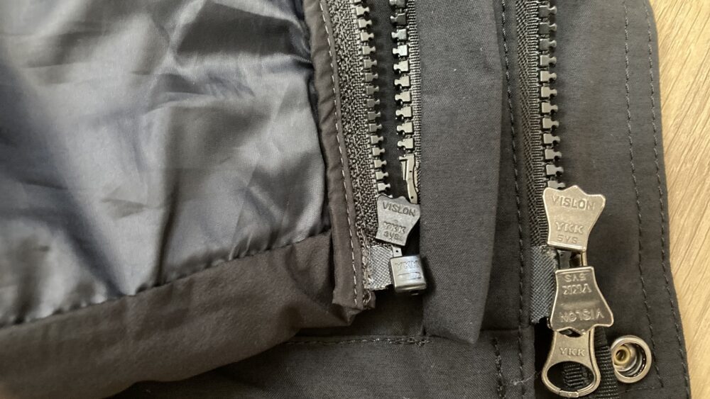 しかし規格が合うジップであればノースフェイス以外のアウターのフロントジップと噛み合わせ、連結が可能になります。